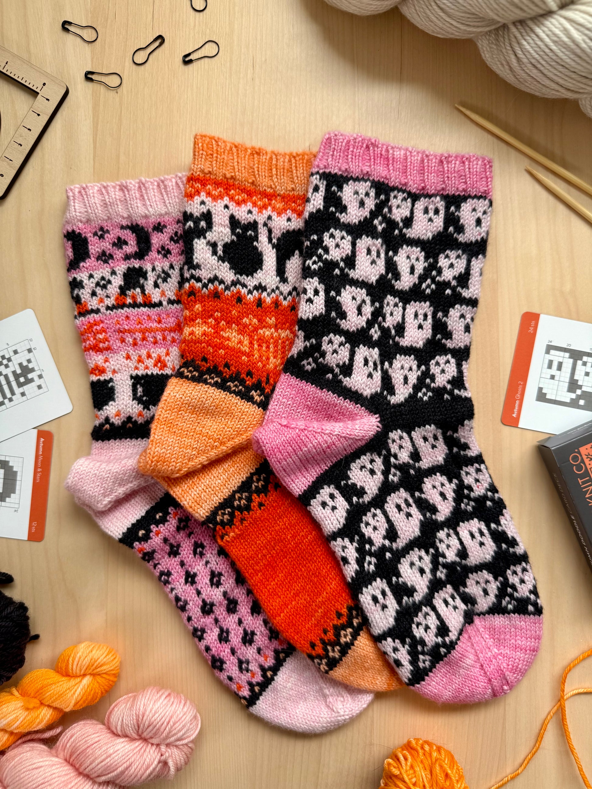 The Autumn Doodle Deck combines cozy fall and spooky Halloween motifs. The charts are fun and festive and will get you ready for your next pumpkin spice latte! Try focusing on just fall or just Halloween to play with how the motifs work together!